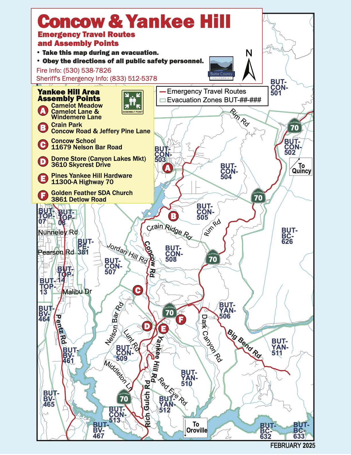 The Following Evacuations Zones for Yankee Hill have been updated as of 2/25/2025: